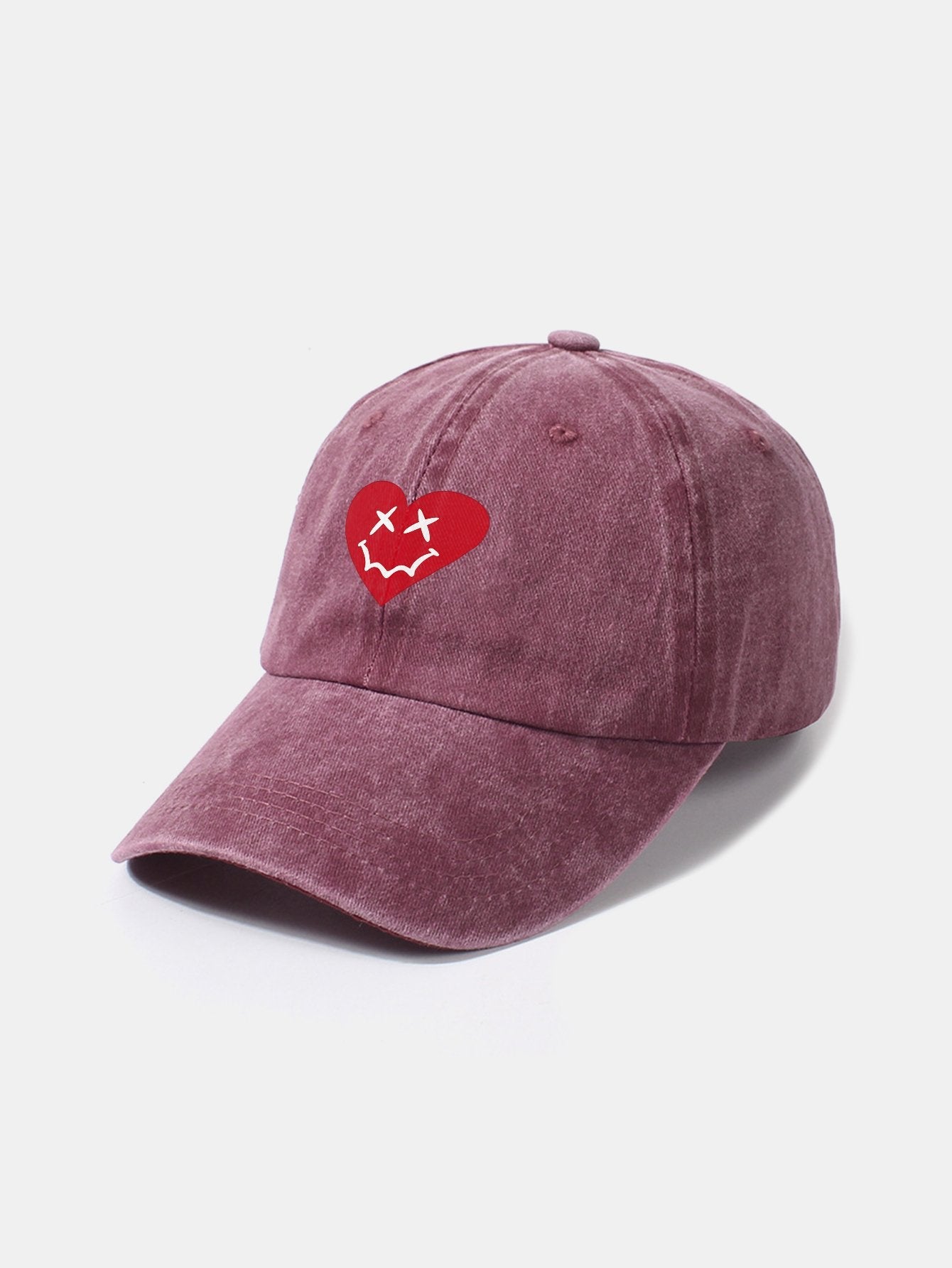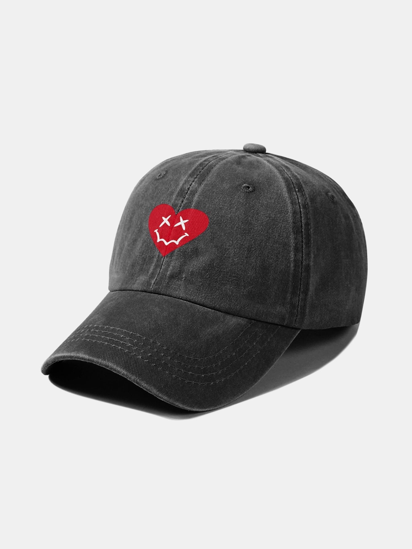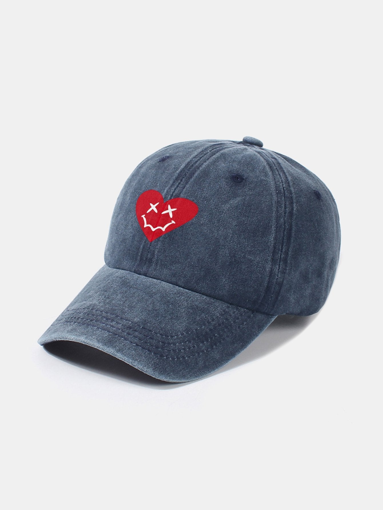 Heart-Shaped Smiley Face Pattern Classic Retro Washed Distressed Cotton Baseball Cap