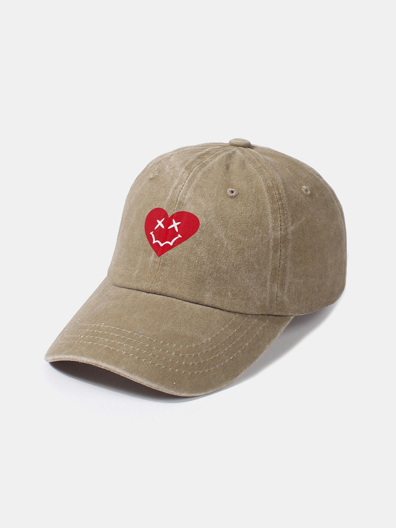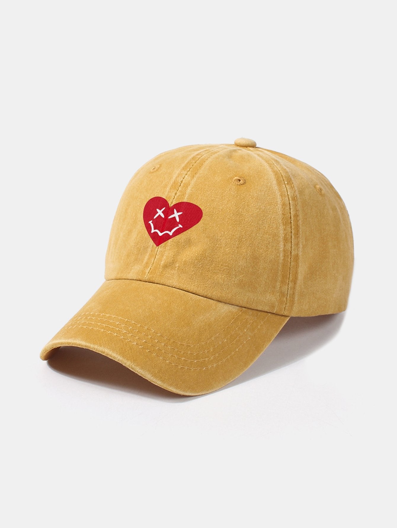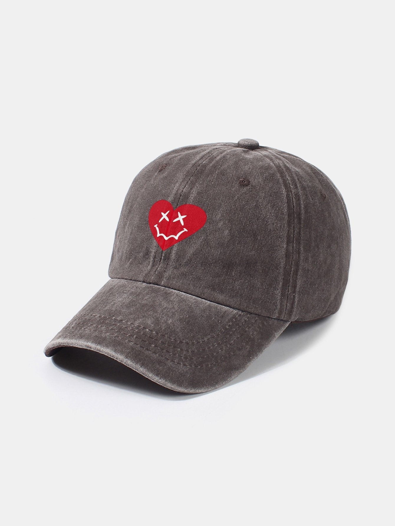 Heart-Shaped Smiley Face Pattern Classic Retro Washed Distressed Cotton Baseball Cap