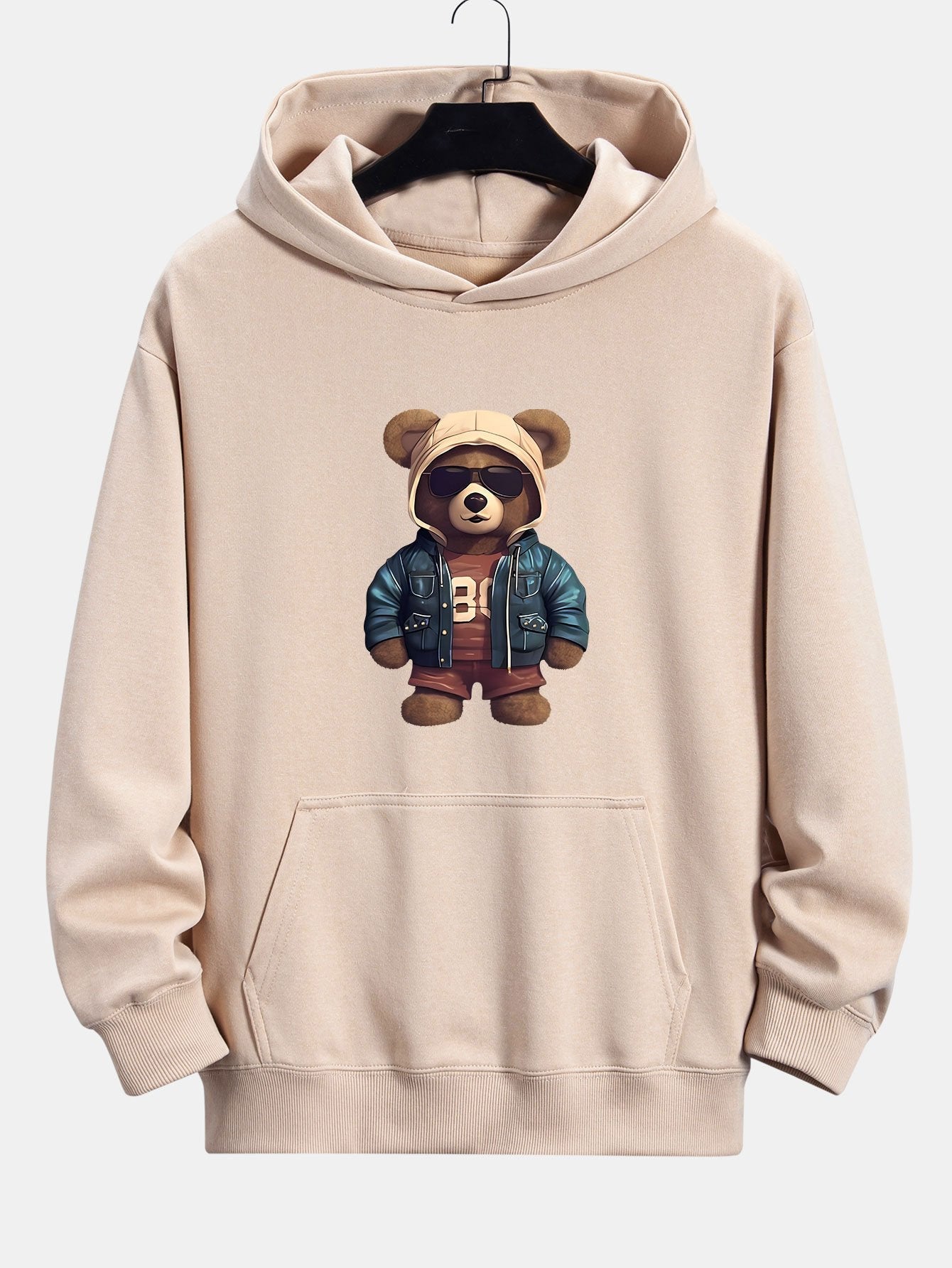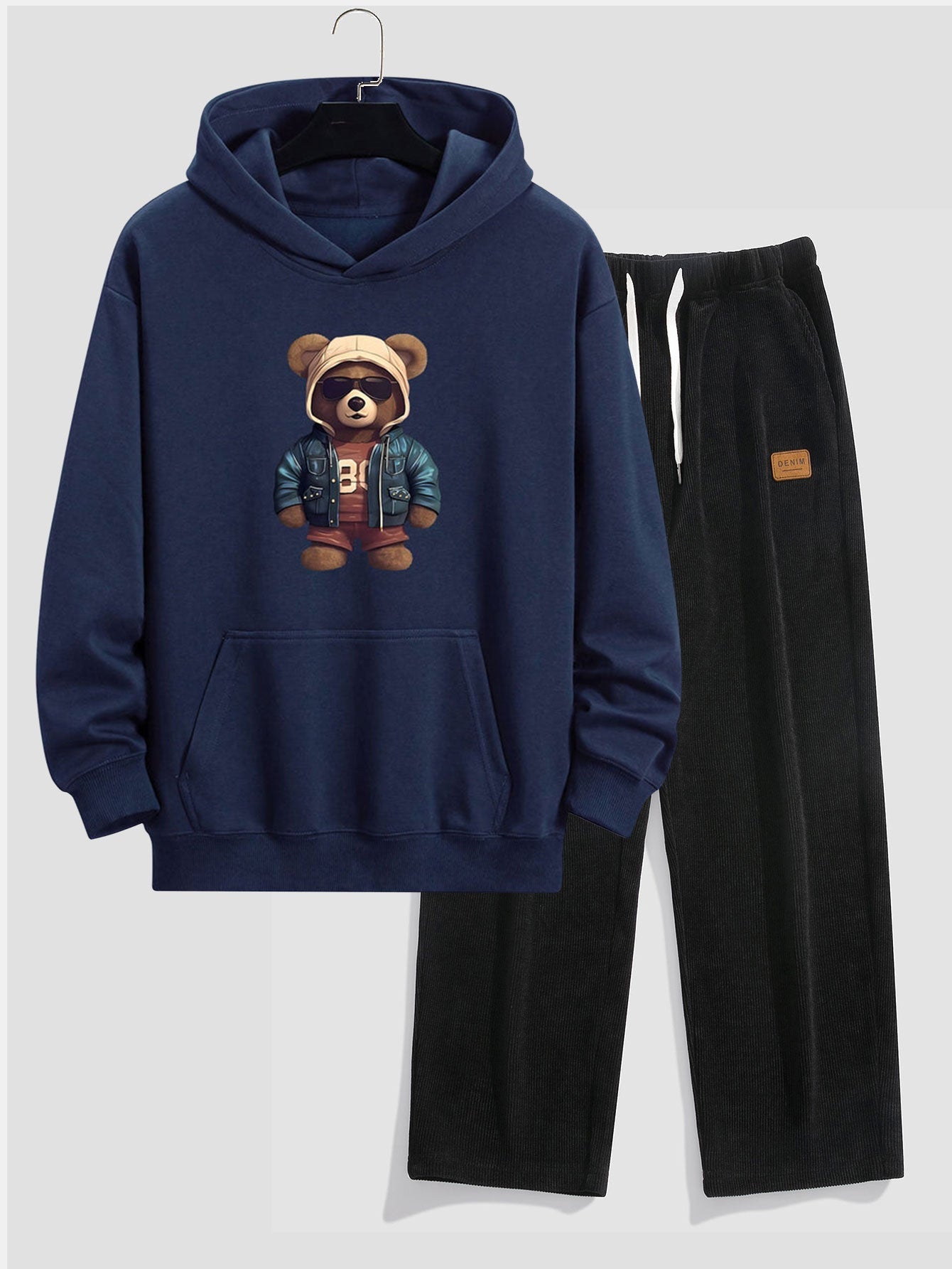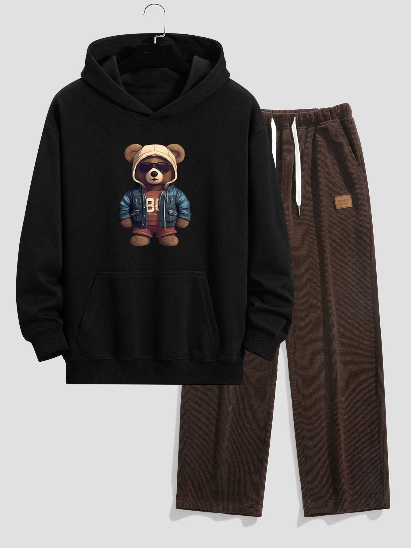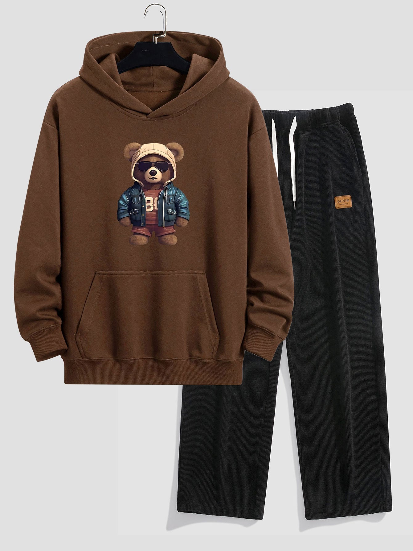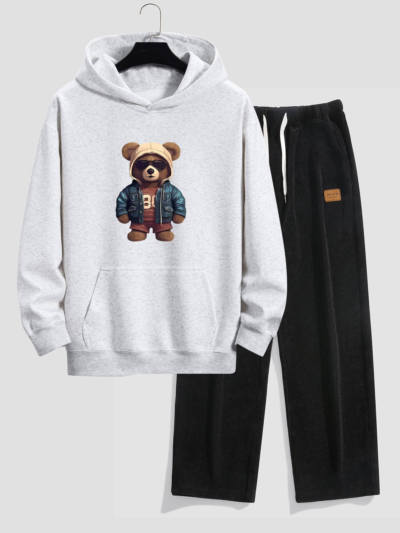 Bear In Leather Jacket Print Relax Fit Hoodie & Straight Leg Corduroy Pants