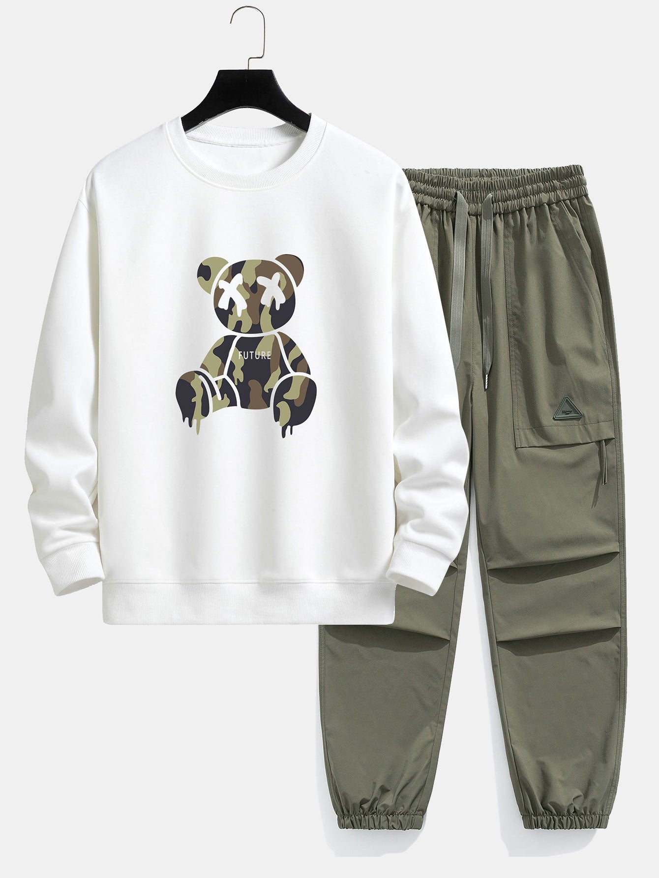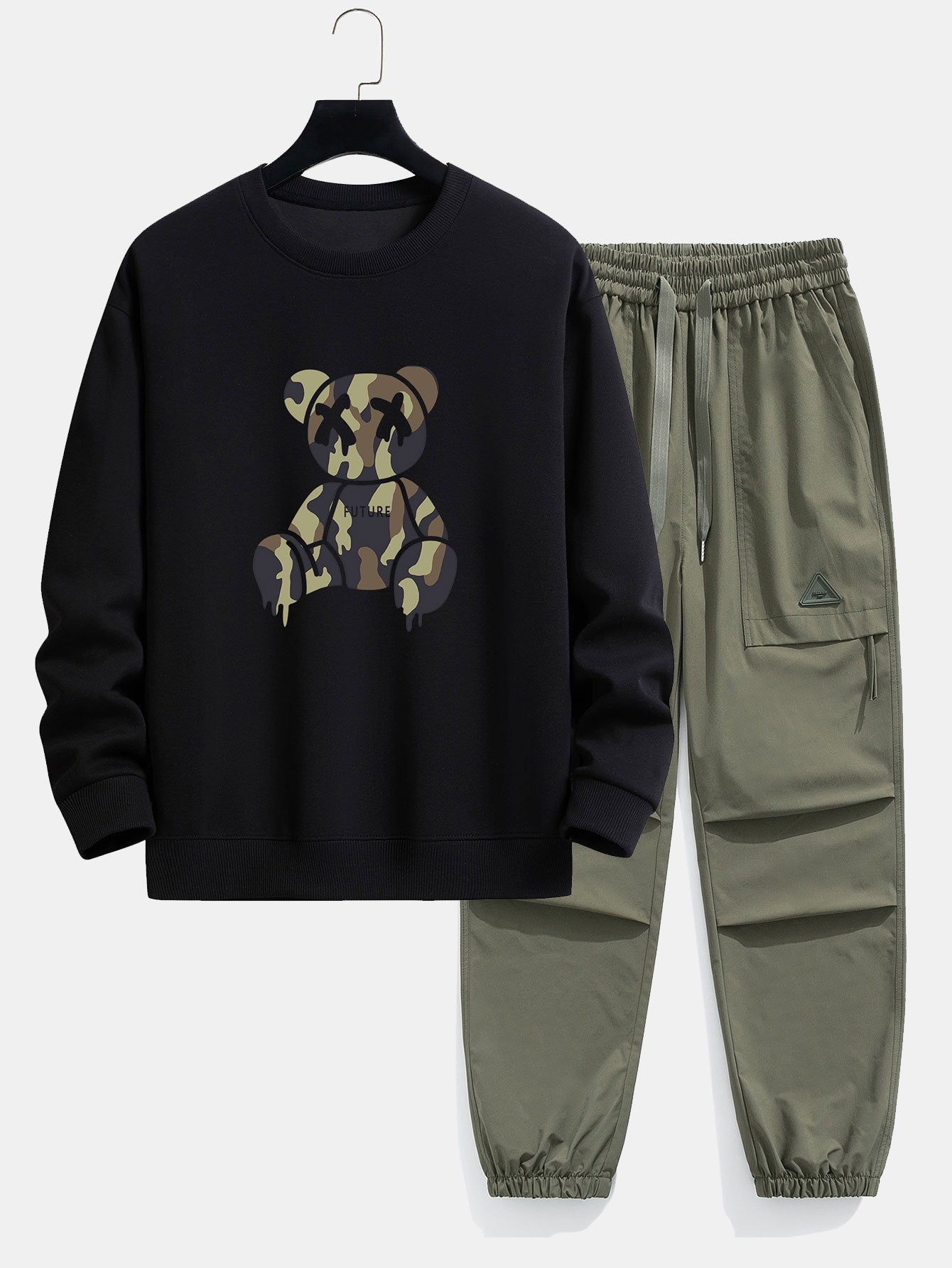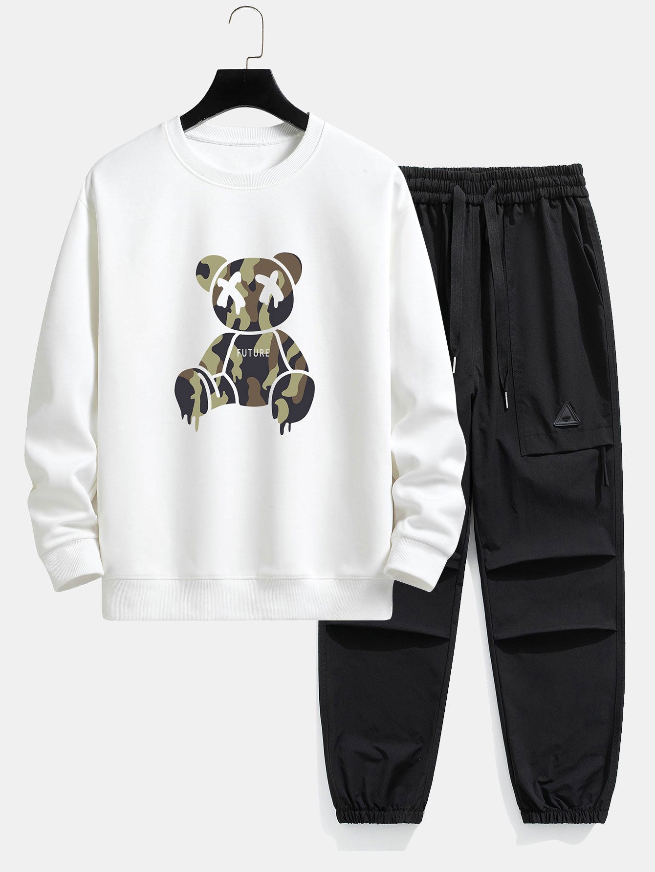 Camouflage Dissolving Bear Print Relax Fit Sweatshirt & Drawstring Jogging Pants