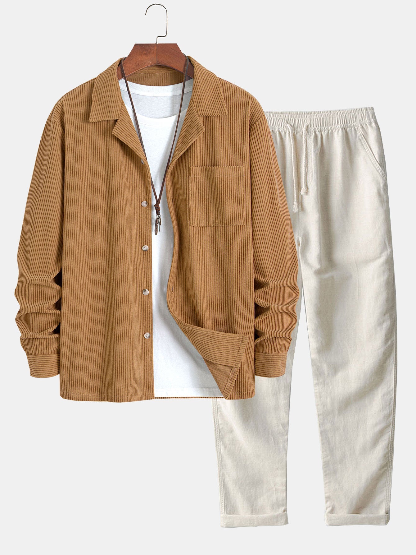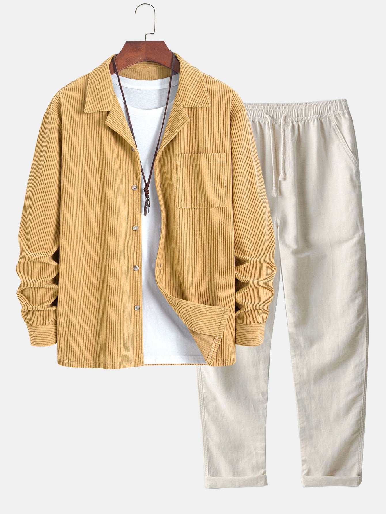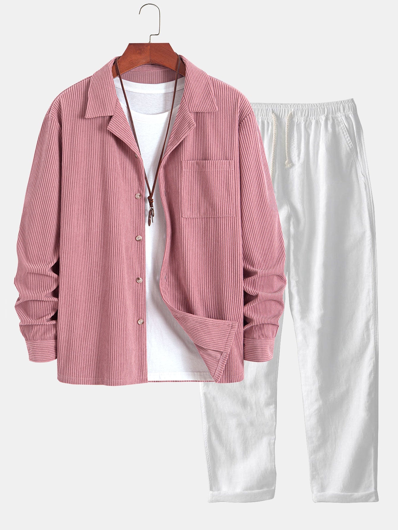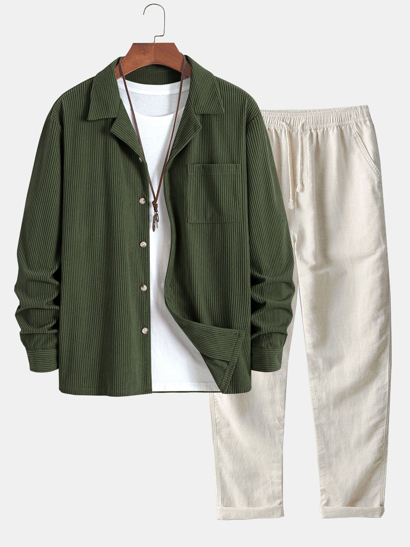 Long Sleeve Corduroy Cuban Collar Shirt & Straight Leg Linen Pants