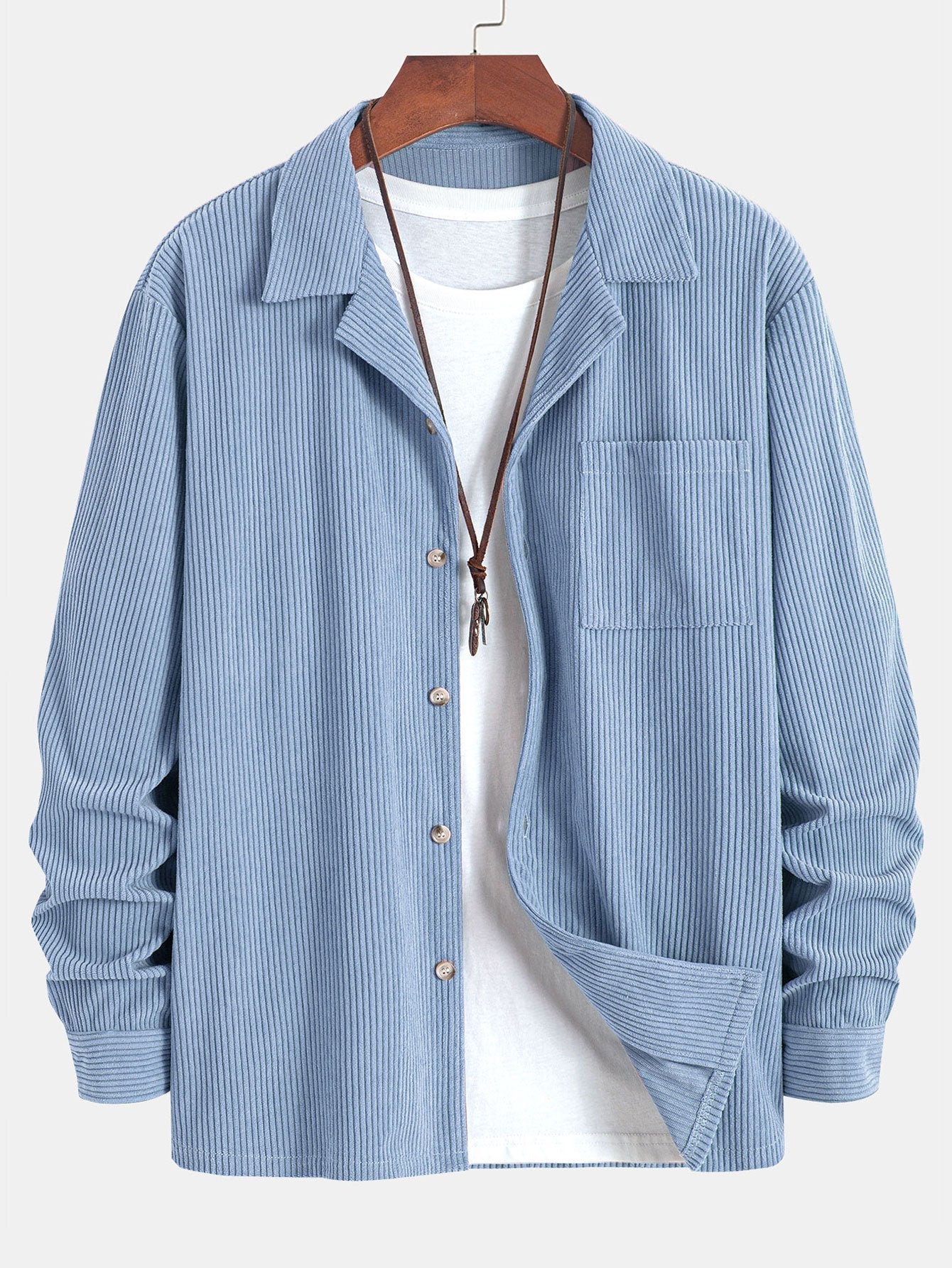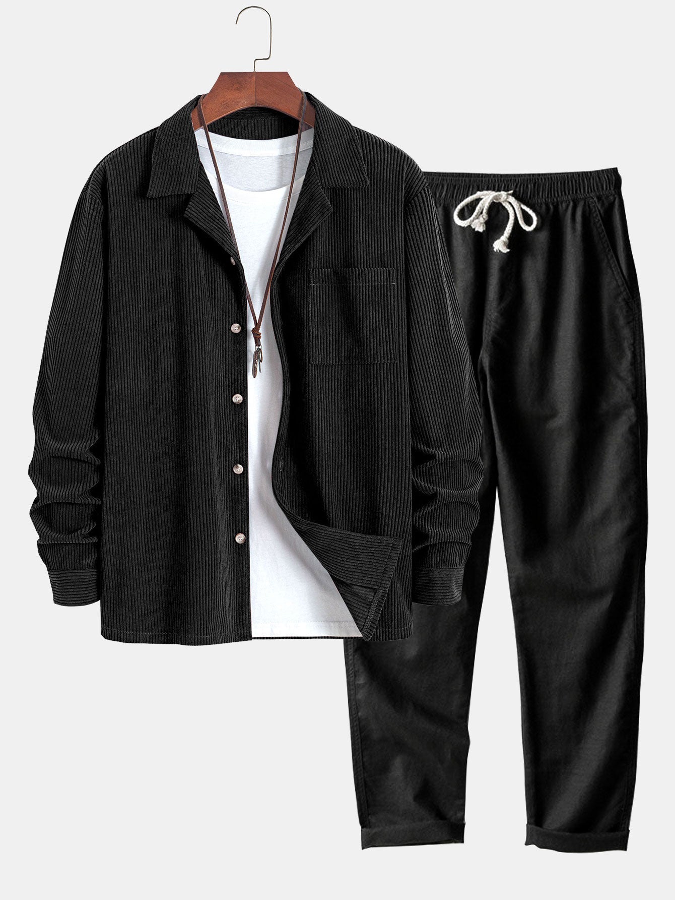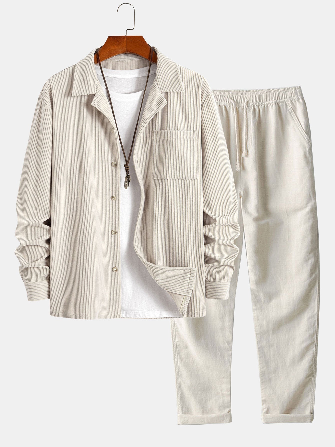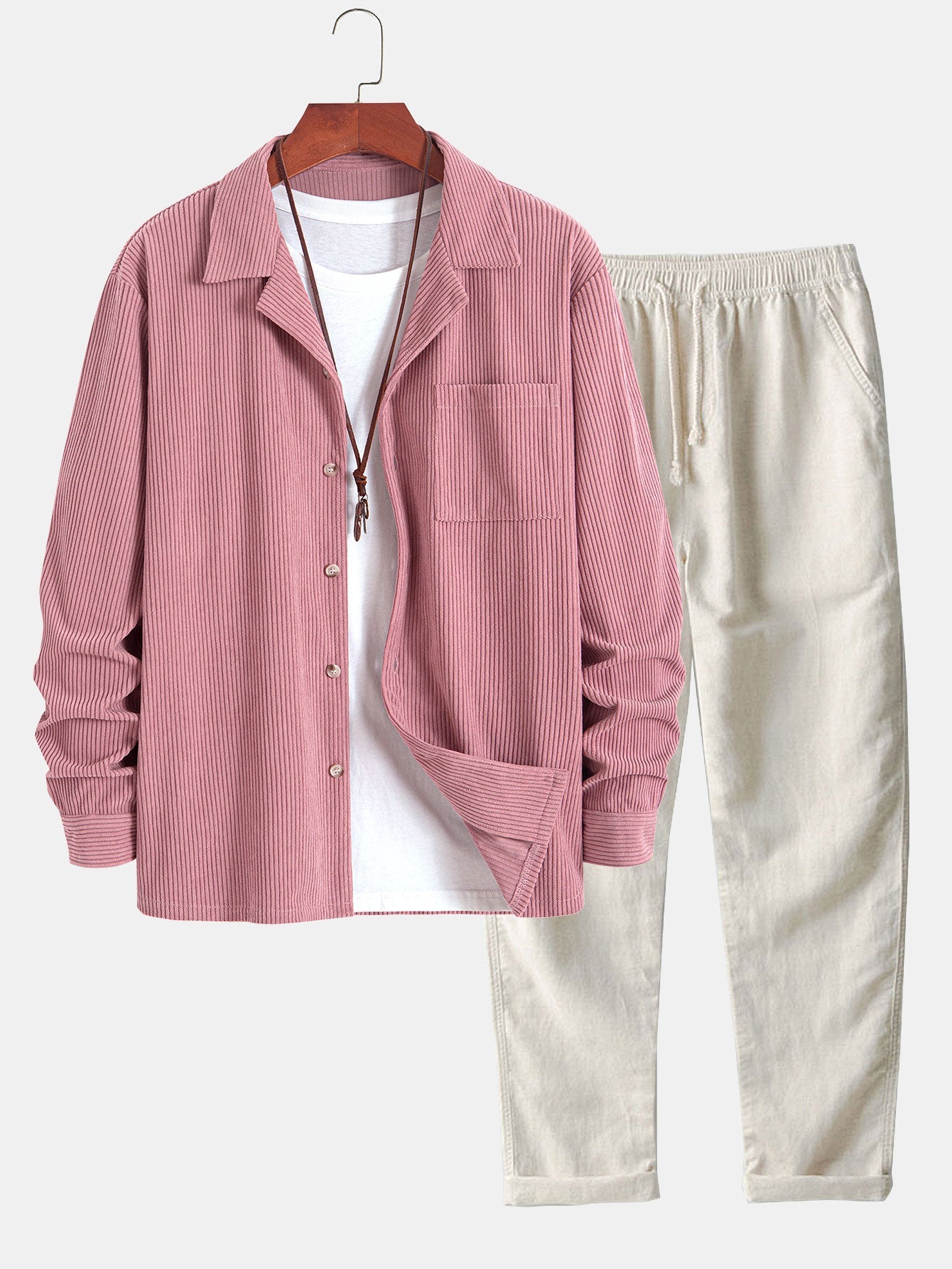 Long Sleeve Corduroy Cuban Collar Shirt & Straight Leg Linen Pants