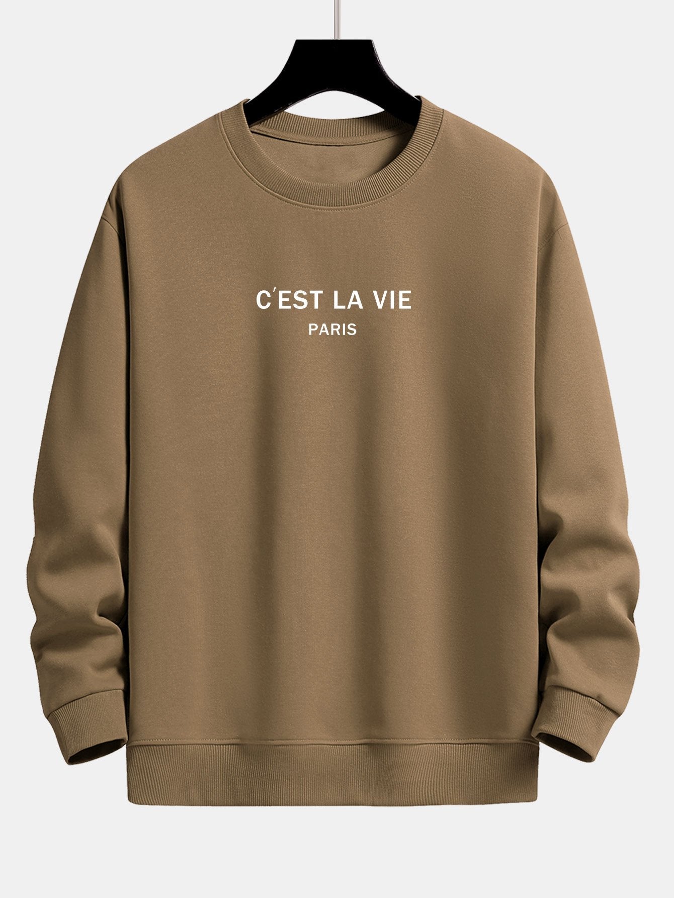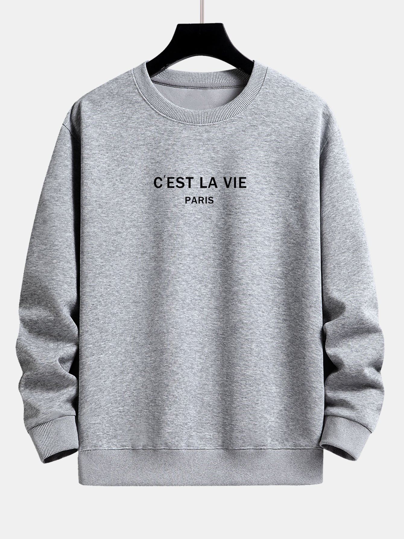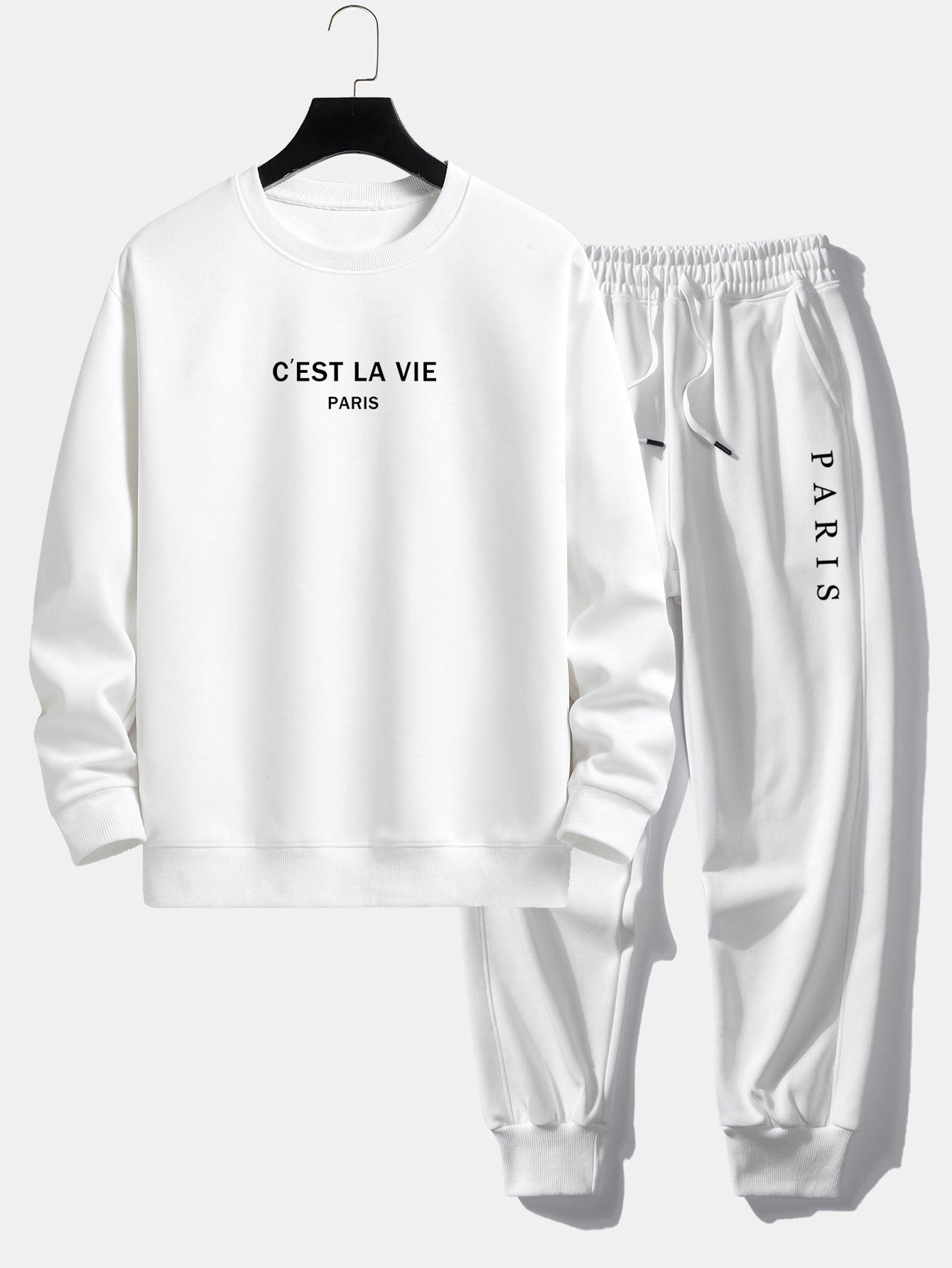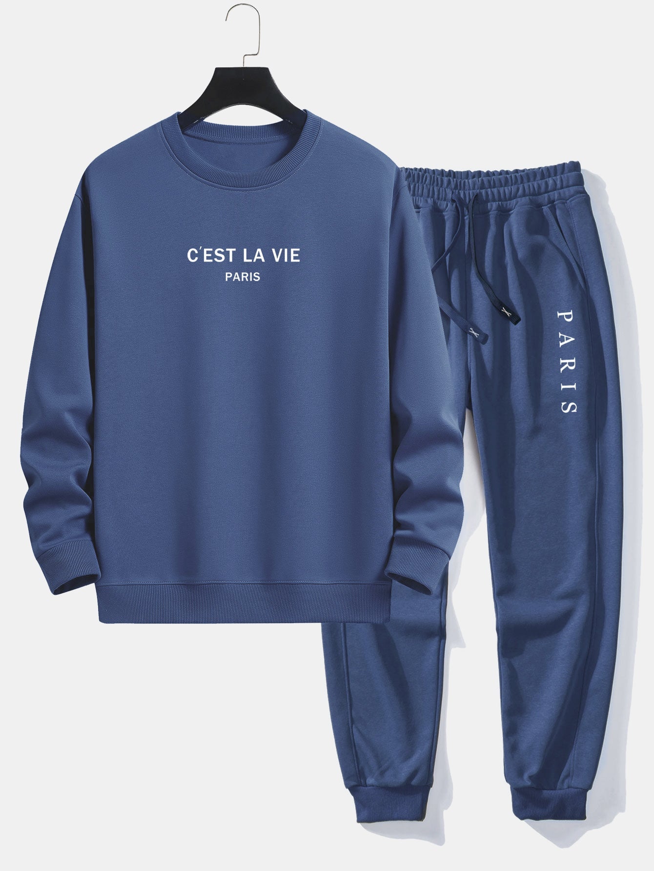 Paris Slogan Print Relax Fit Crew Neck Sweatshirt & Jogging Pants